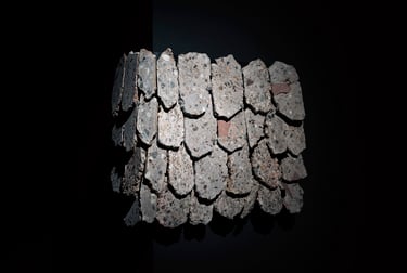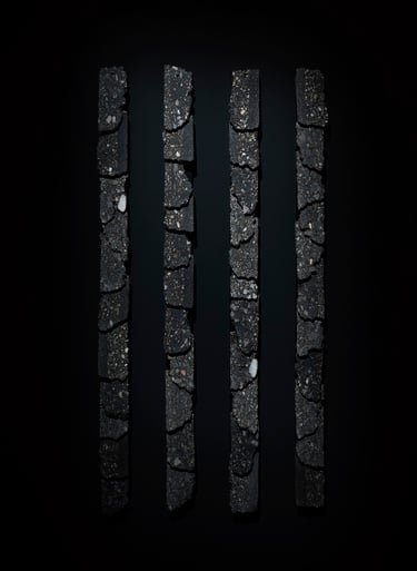Die Arbeit "Querschnitte des anthropogenen Lagers" setzt sich konzeptionell und praktisch mit der Wiederverwendung von Bauschutt auseinander.