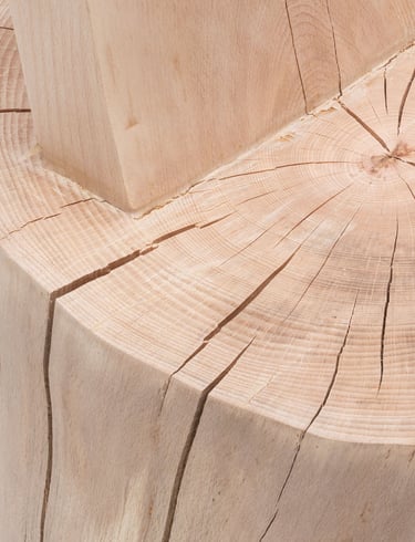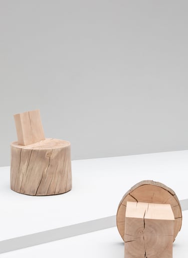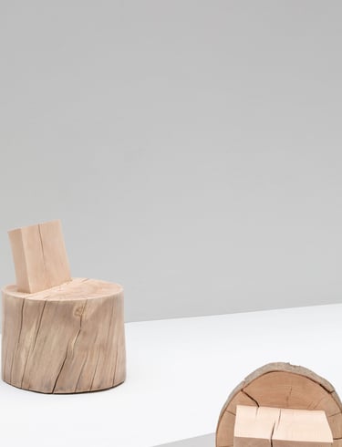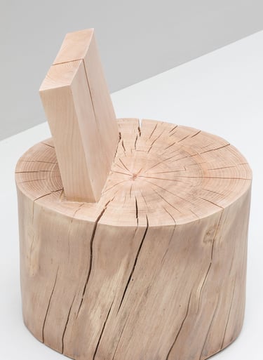Gib einem Designer einen großen Baumstamm und eine Kettensäge. Und man erkennt, dass das, was Michelangelo über Marmor sagte, genauso gut für einen Baumstamm gilt. Wie ein Bildhauer muss ein Designer nur Material entfernen, um das Objekt sichtbar zu machen. Indem man Teile des Stammes intakt lässt, entsteht ein Kontrast zwischen menschengemachten und natürlichen Formen und lässt Raum für Gedanken über die komplexe Beziehung zwischen Mensch und der natürlichen Welt.